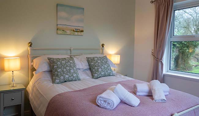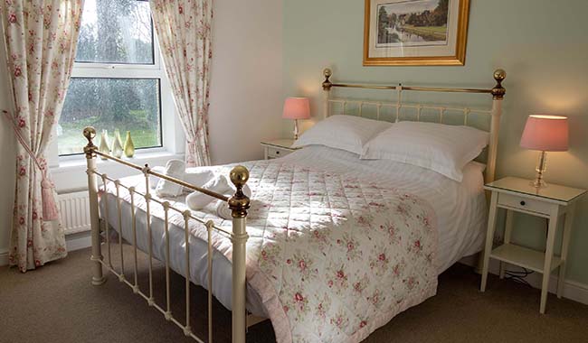 The Valley standard double room is the smaller of our 3 rooms, however the double framed bed provides comfortable accommodation for 2 people. Tea and Coffee making facilities are presented on a Console table, with complimentary biscuits and bottled water. A 24 inch wall mounted and internet connected smart television is provided and free wireless internet access is available. The en-suite (whilst compact) includes a generously sized shower, large towel radiator and toiletries. Room size: 140 sq ft (including en-suite)